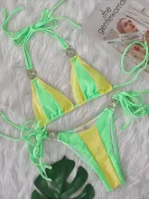 Splicing Jewelled Diamond Bikini 2025 Women Swimsuit Female Swimwear Two Pieces Bikini Set Halter Bathing Suit Swim Beach Wear