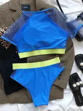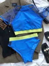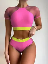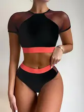 Splicing Mesh Short Sleeve Bikinis High Waist Bikini Women Swimsuit Female Swimwear Two-piece Bikini Set Bathing Suit Swim Lady