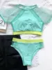 Splicing Mesh Short Sleeve Bikinis High Waist Bikini Women Swimsuit Female Swimwear Two-piece Bikini Set Bathing Suit Swim Lady