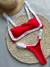 Splicing Micro Thong Bikini Women Bandeau Swimwear Female Swimsuit Two-pieces Bikini Set High Cut Bather Bathing Suit Swim Lady