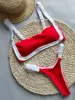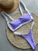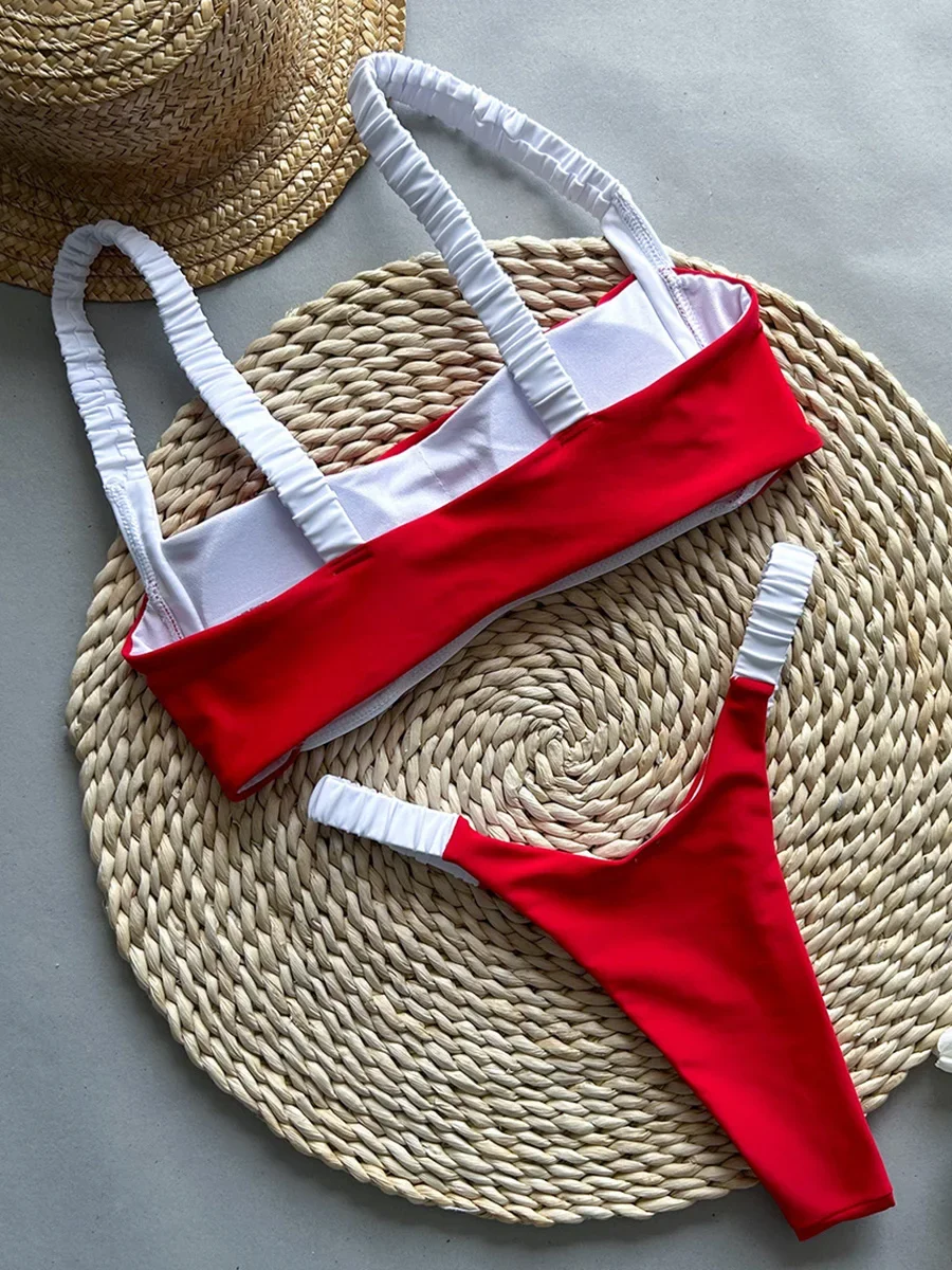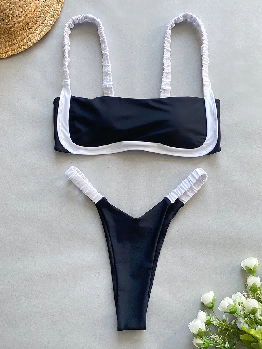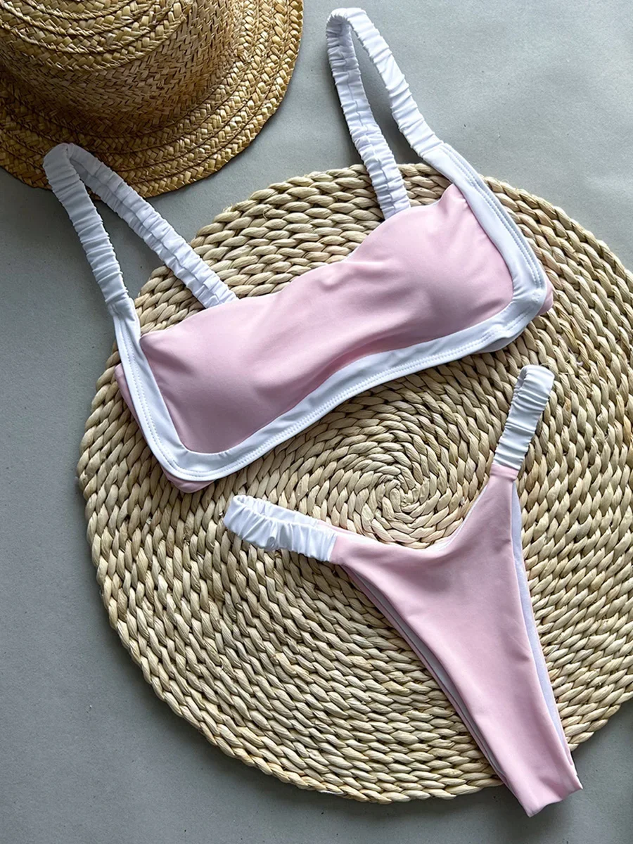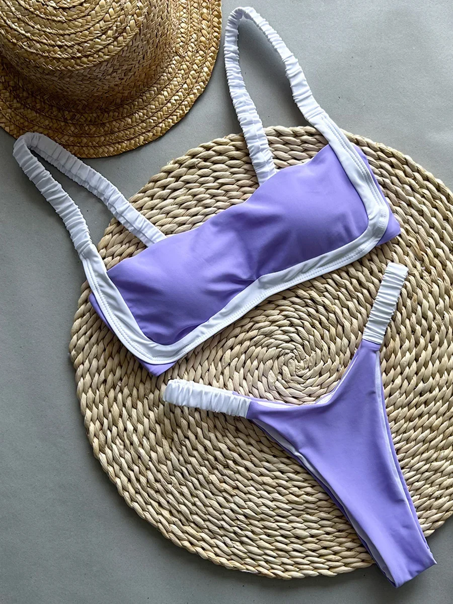 Splicing Micro Thong Bikini Women Bandeau Swimwear Female Swimsuit Two-pieces Bikini Set High Cut Bather Bathing Suit Swim Lady