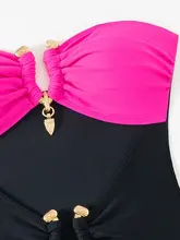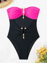 Splicing Tummy Cut Out Bandeau Women Swimwear One Piece Swimsuit Female High Cut Monokini Bather Bathing Suit Swim Beachwear