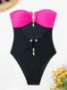 Splicing Tummy Cut Out Bandeau Women Swimwear One Piece Swimsuit Female High Cut Monokini Bather Bathing Suit Swim Beachwear
