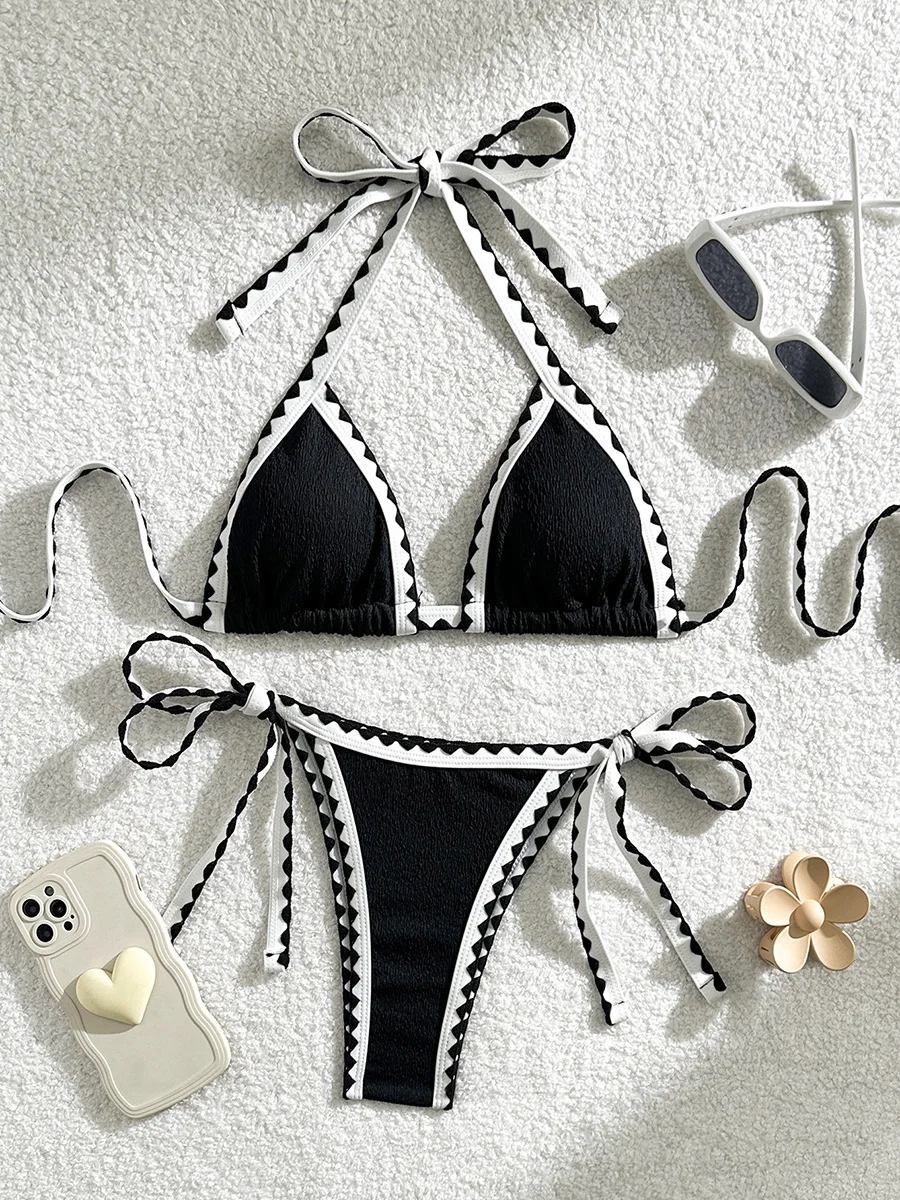 Splicing Wrinkled Pleated Bikinis 2025 High Cut Bikini Women Swimwear Female Swimsuit Two-pieces Bikini Set Bathing Suit Swim