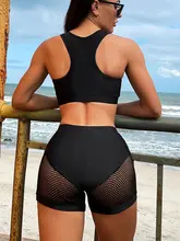 Sport Fishnet Sheer Shorts High Waist Bikini Women Swimwear Female Swimsuit Two-piece Bikini Set Bathing Suit Swim Beach Wear