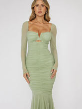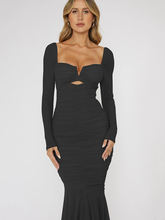 Square Collar Backless Midi Dress For Women Two Layer Mesh Sheer Long Sleeve Bodycon Club Party Long Dress New