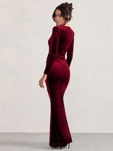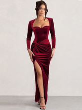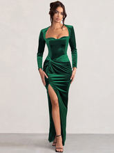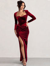 Square Collar Long Sleeve Maxi Dress For Women Velvet Ruched Split Bodycon Club Party Elegant Long Dress