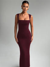 Square Collar Sleeveless Maxi Dress For Woman Spring Summer High Waist Bodycon Club Party Long Dress