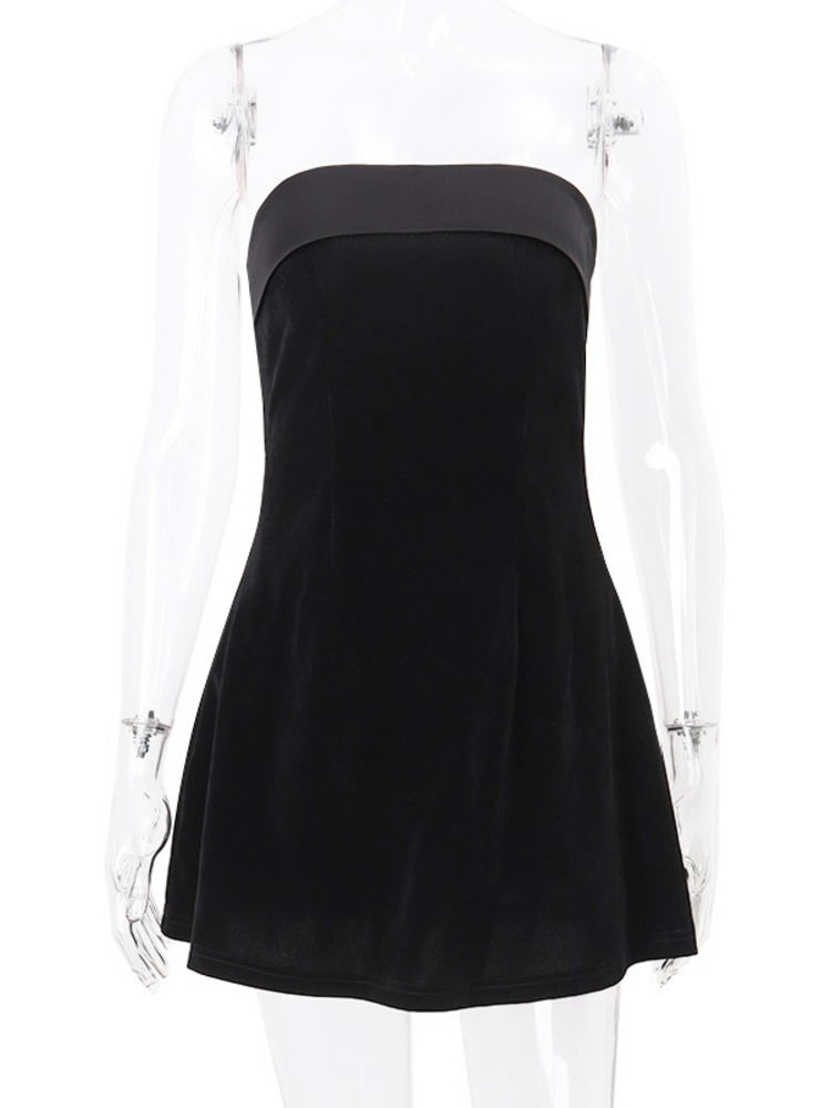 Strapless Backless Mini Dress Women With Zipper Off-shoulder Sleeveless A-line Bodycon Club Party Dress