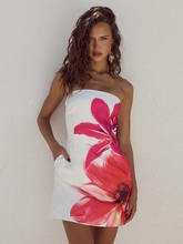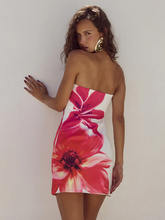 Strapless Backless Print Dress For Women Patchwork Off-shoulder Sleeveless Bodycon Club Party Print Mini Dress