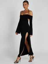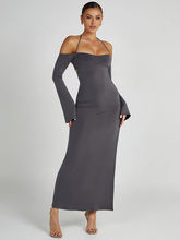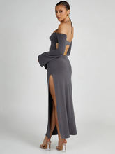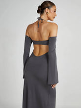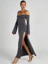 Strapless Off-shoulder Maxi Dress For Women Autumn Gray Long Sleeve Backless Bodycon Split Long Dress Elegant