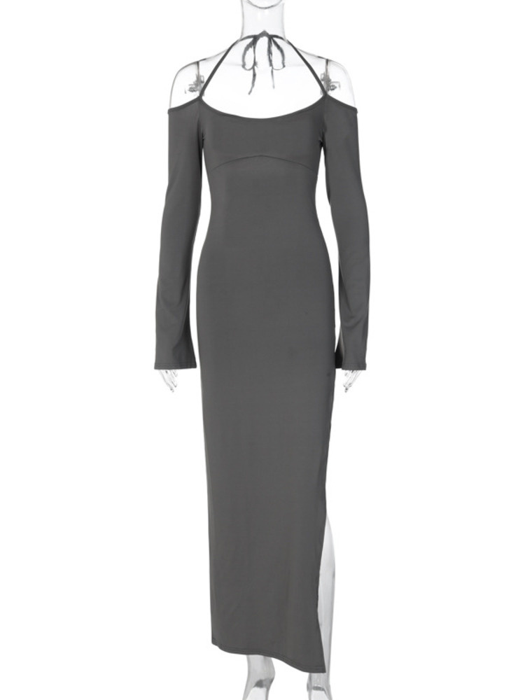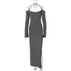 Strapless Off-shoulder Maxi Dress For Women Autumn Gray Long Sleeve Backless Bodycon Split Long Dress Elegant