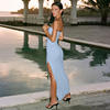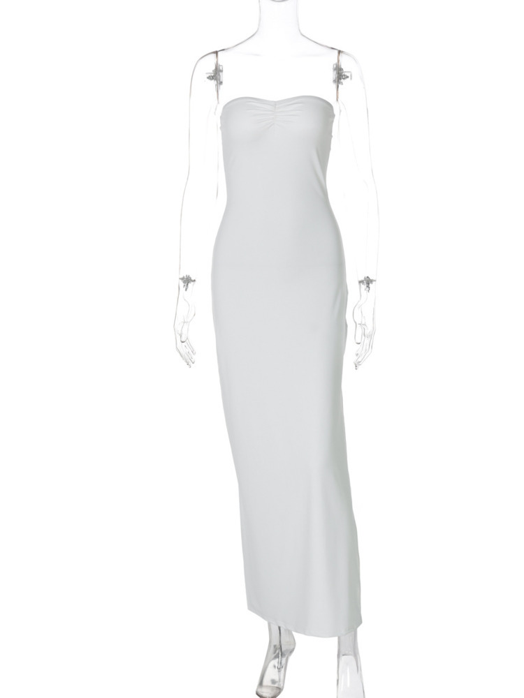 Strapless Off-shoulder Maxi Dress For Women Gown Solid Sleeveless Backless Thigh High Split Bodycon Long Dress