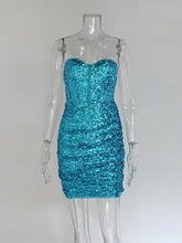 Strapless Shiny Sequin Glitter Mini Dress Women Off-shoulder Backless Ruched Bodycon Club Party Dress Vestido