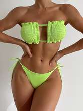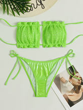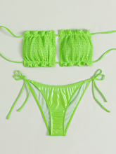 String Bandeau Bikinis 2025 Women Swimwear Female Green Swimsuit Solid Beachwear Bathers Bathing Swimming Swim Suit