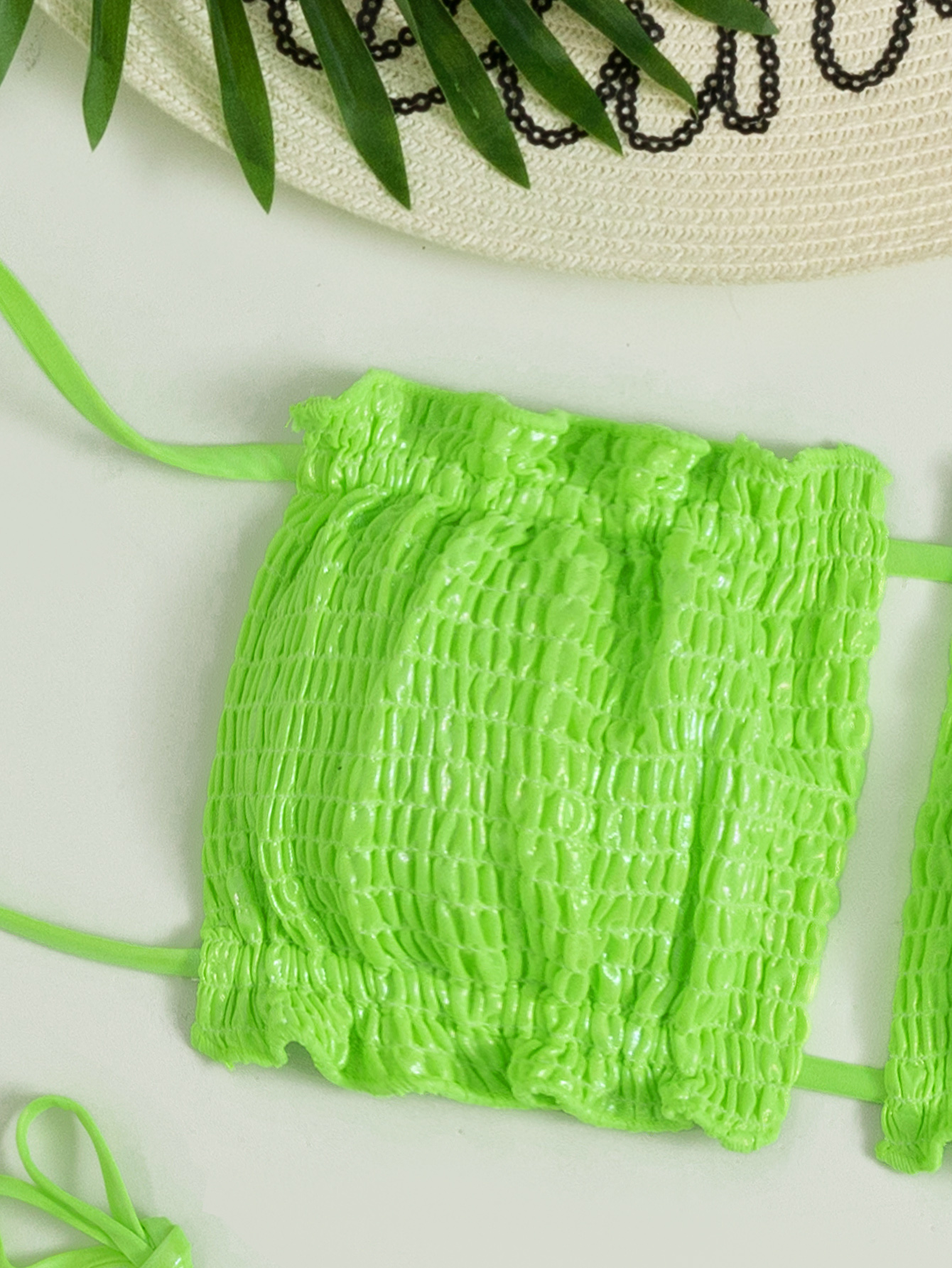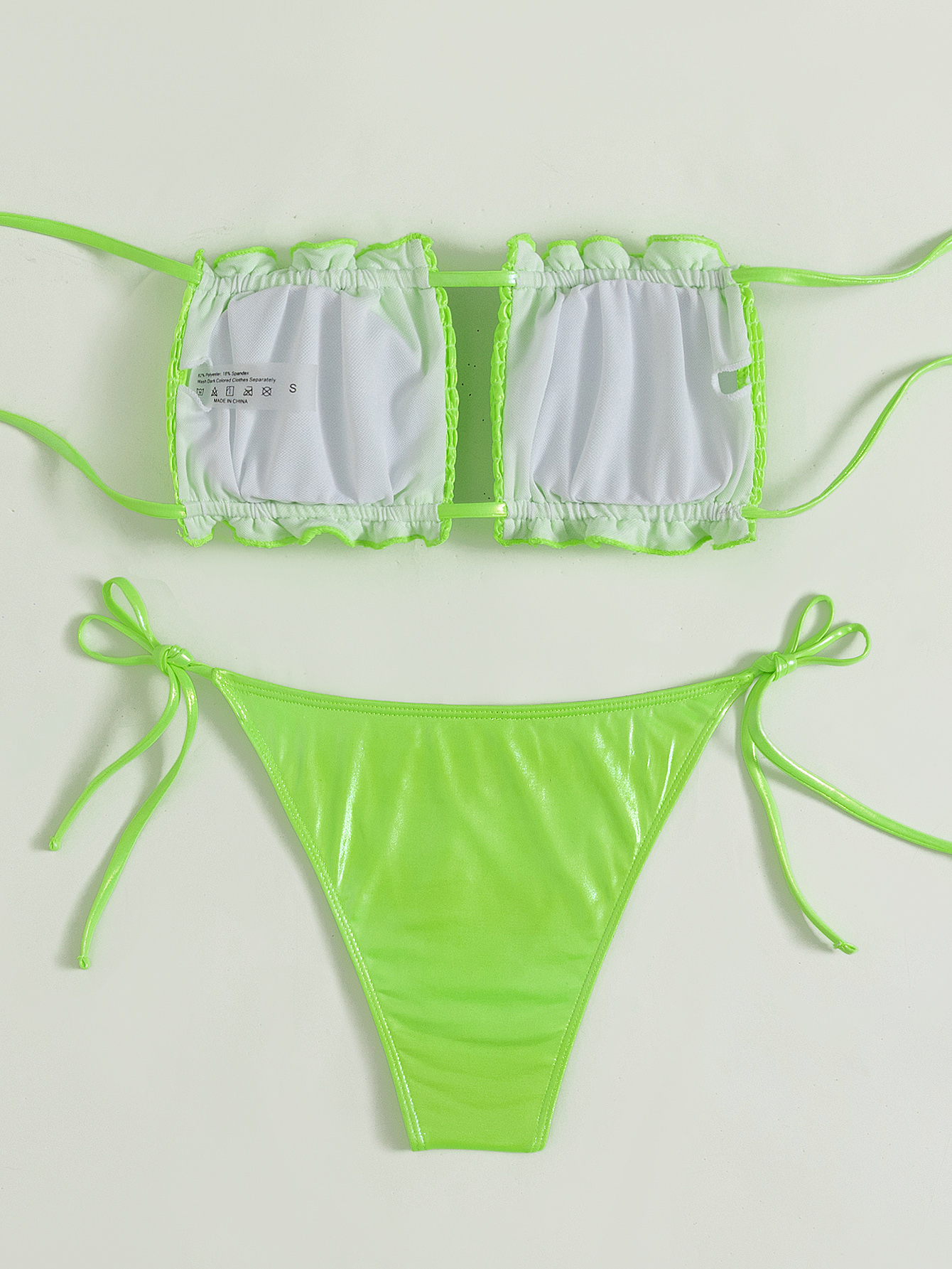 String Bandeau Bikinis 2025 Women Swimwear Female Green Swimsuit Solid Beachwear Bathers Bathing Swimming Swim Suit