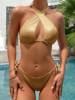 String Bikini 2025 Women Solid Halter Swimsuit Tie Side Swimwear Female Bathing Swimming Swim Suit Beachwear