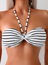 Striped Bandeau Bikinis 2025 Halter Swimsuit Women Swimwear Female Bathers Bathing Swimming Swim Suit Beachwear
