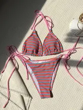 Striped Halter High Cut Velvet Bikini Female Swimsuit Women Swimwear Two-pieces Bikini Set Bather Bathing Suit Swim Lady