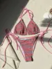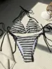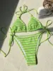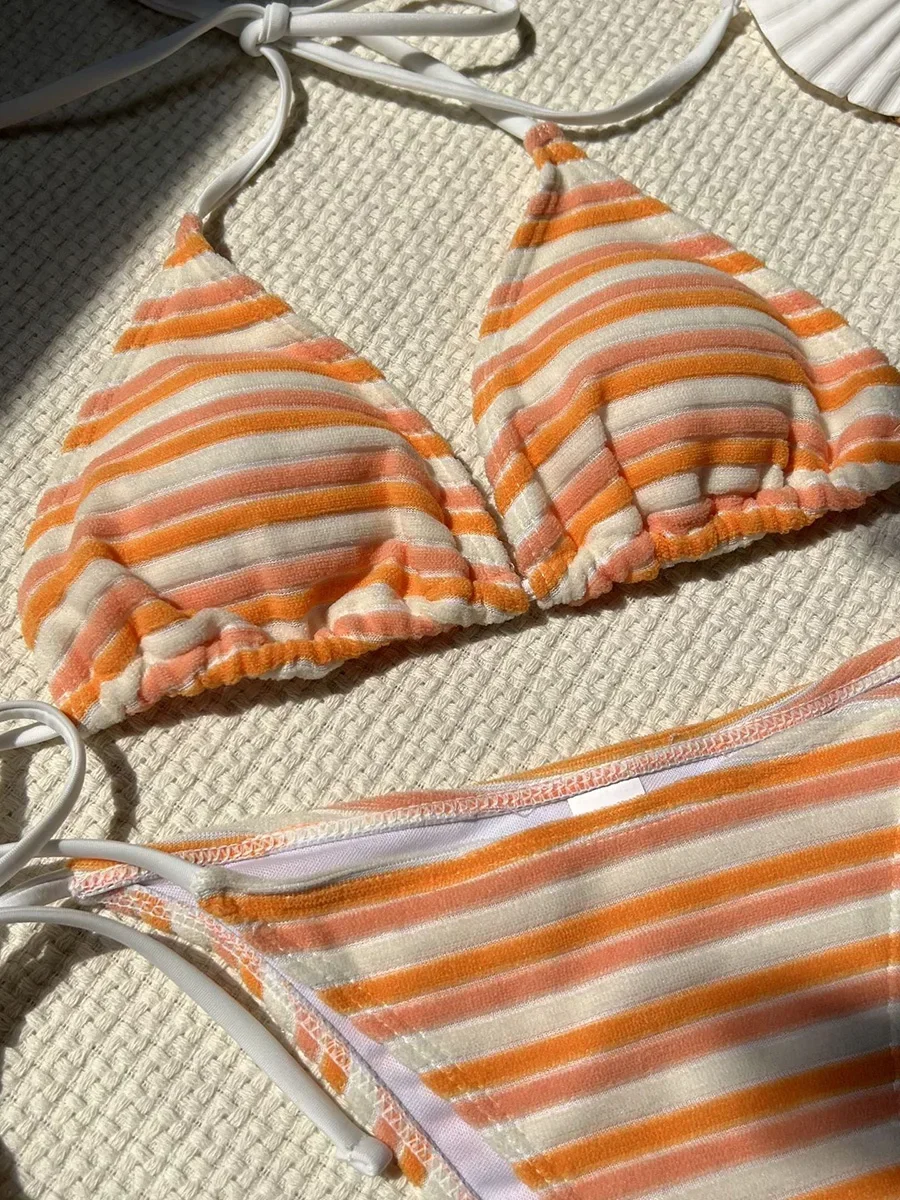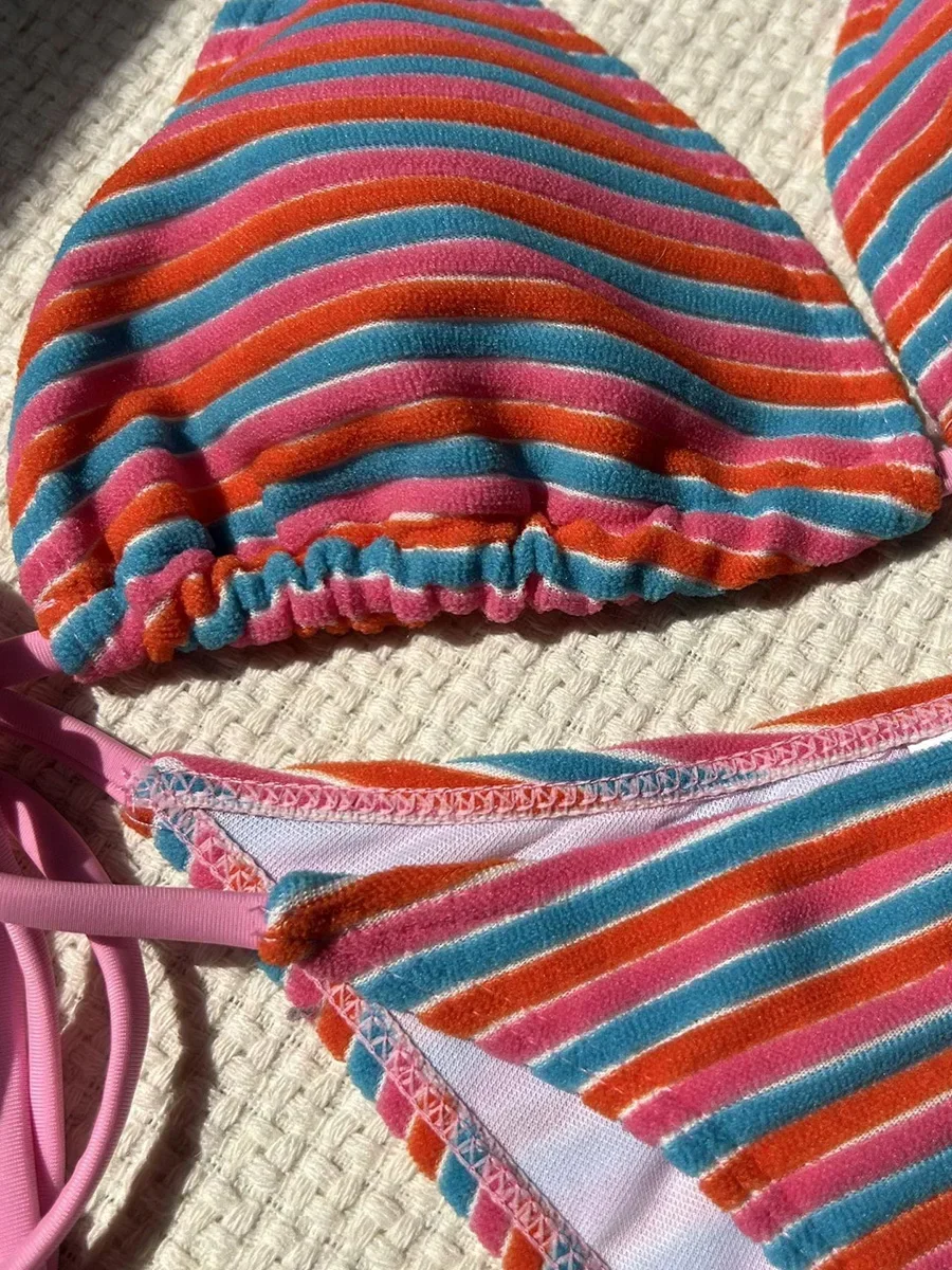 Striped Halter High Cut Velvet Bikini Female Swimsuit Women Swimwear Two-pieces Bikini Set Bather Bathing Suit Swim Lady