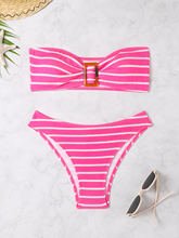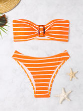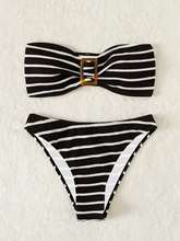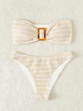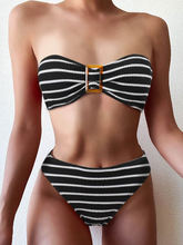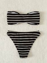 Striped Textured Bandeau Bikinis 2025 Women Swimsuit Push Up Swimwear Female Bathing Suit Swimming Summer Beachwear