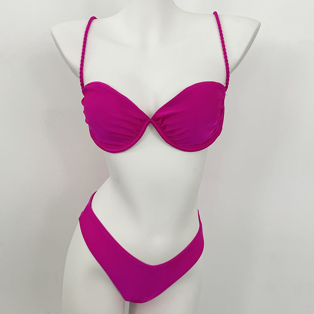 Summer 2025 Spilt Two-Piece Swimwear Solid Strap Bikini Set Women’s Bathing Suit Beachwear Brazilian Bottoms