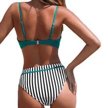Summer Swimsuit Two-piece Cross Push-up Swimwear Striped Matching Tight Backless Beachwear Women Seaside Swimsuit 2025