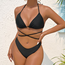 Triangle Halter Bikini 2025 Women Black Swimsuit Bandage Swimwear Female Bathers Bathing Swimming Swim Suit Beachwear