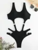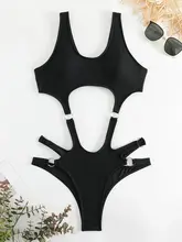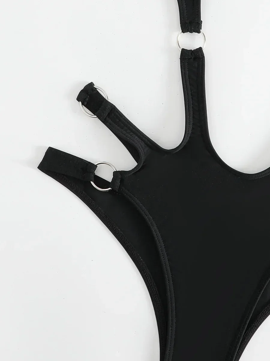 Tummy Cut Out Metal Rings Strappy Women Swimwear One Piece Swimsuit Female Padded High Cut Bather Bathing Suit Swim Lady