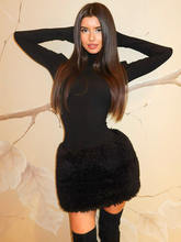 Turtleneck Long Sleeve Mini Dress For Women Elegant Black Feather Bottom Slim Fit High Waist Club Dress