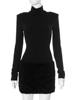 Turtleneck Long Sleeve Mini Dress For Women Elegant Black Feather Bottom Slim Fit High Waist Club Dress