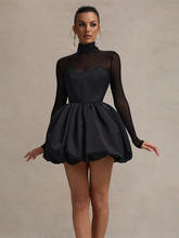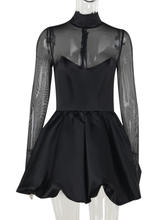 Turtleneck Sheer Long Sleeve Mini Dress For Women Black See Through High Waist A-line Club Party Dress Elegant