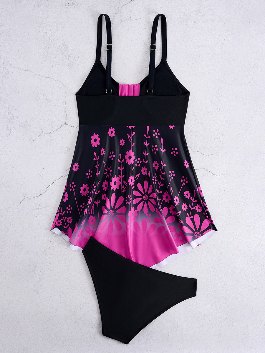 Two Pieces Swimsuit Women 2025 Printed Tankini Set Floral Swimwear Female Bathers Bathing Swimming Swim Suit Beachwear Summer