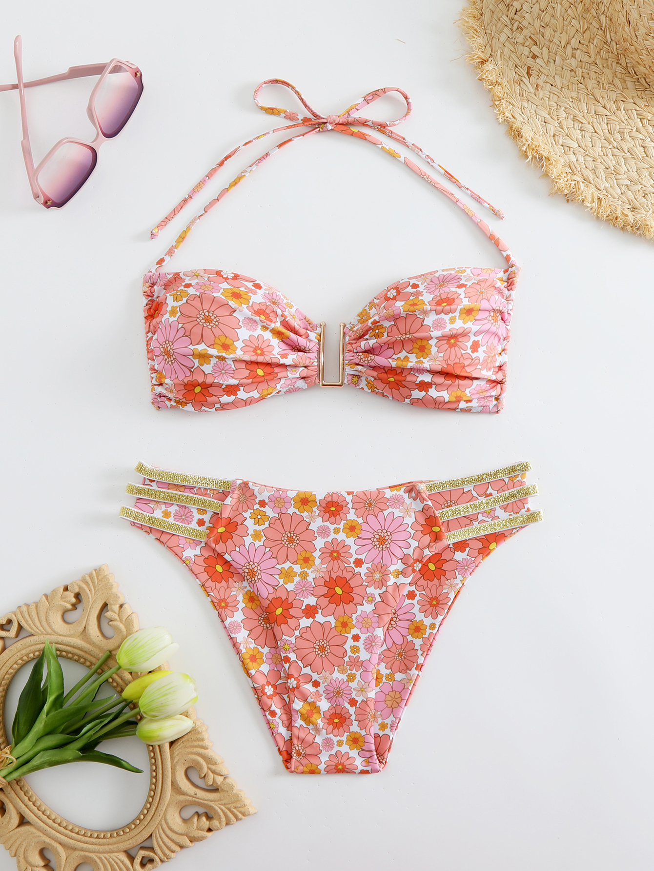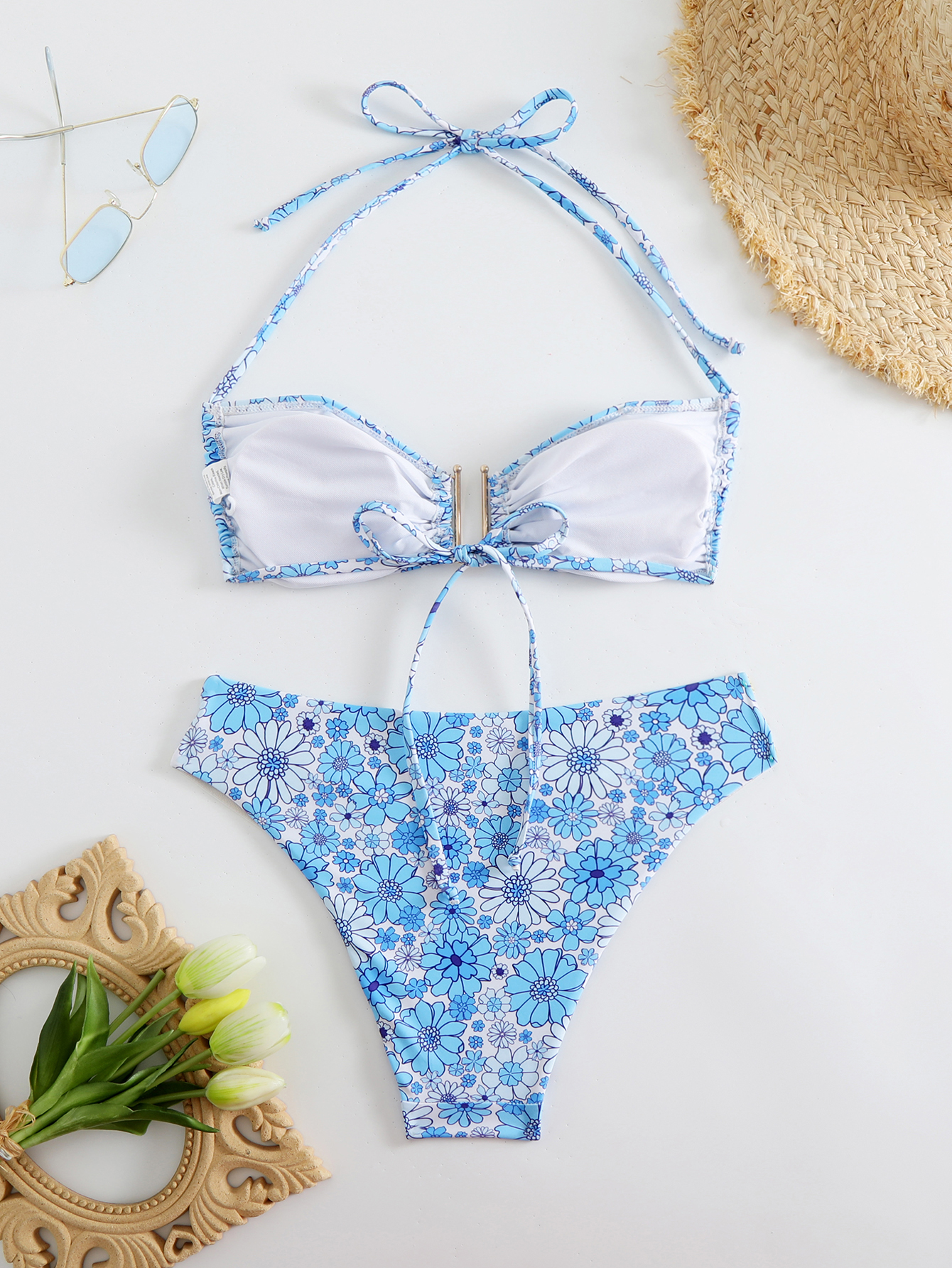U Wire Bandeau Bikini 2025 Women Halter Printed Swimsuit Solid Swimwear Female Bathers Bathing Swimming Swim Suit Beachwear