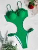 Underwired Ruffled Bandeau Swimsuits 2025 Female Swimwear One Piece Swimsuit Women High Cut Monokini Bra Cup Bathing Suit Swim