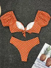 V Neck Short Sleeve Bikinis Polka Dot Bikini Female Swimsuit Women Swimwear Two-pieces Bikini Set Bather Bathing Suit Swim
