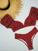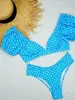 V Neck Short Sleeve Bikinis Polka Dot Bikini Female Swimsuit Women Swimwear Two-pieces Bikini Set Bather Bathing Suit Swim