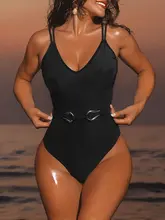 V Neck Women Thong Swimwear One Piece Swimsuit Female High Leg Cut Monokini Bather Backless Bathing Suit Swim Beachwear