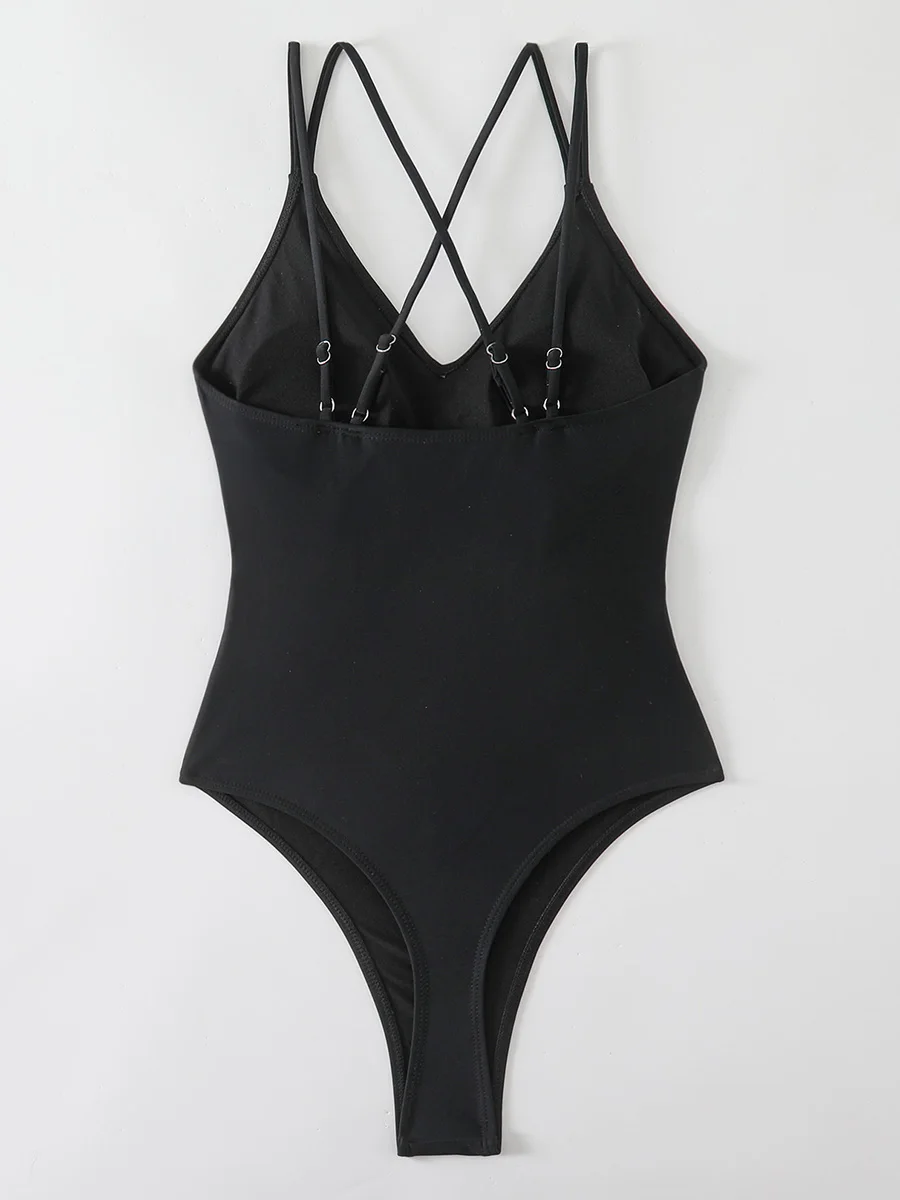 V Neck Women Thong Swimwear One Piece Swimsuit Female High Leg Cut Monokini Bather Backless Bathing Suit Swim Beachwear
