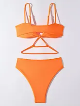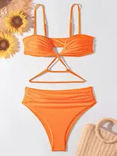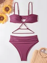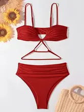V Neck Wrinkled Stain Bikinis Female Swimsuit High Waist Bikini Women Swimwear Two-pieces Bikini Set Bather Bathing Suit Swim