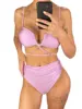 V Neck Wrinkled Stain Bikinis Female Swimsuit High Waist Bikini Women Swimwear Two-pieces Bikini Set Bather Bathing Suit Swim