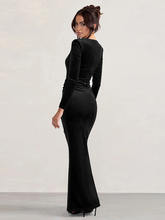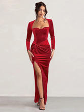 Velvet Long Sleeve Maxi Dress For Women Autumn Winter Square Collar Thigh High Split Evening Club Party Dress