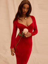 Velvet Long Sleeve Maxi Dress For Women Elegant V Neck Back Slit Bodycon Club Party Dress Clubwear Dresses