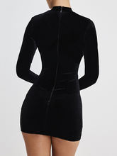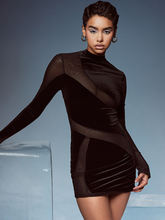 Velvet Long Sleeve Mini Dress For Women Zipper Mesh Patchwork Bodycon Club Party Dress Elegant