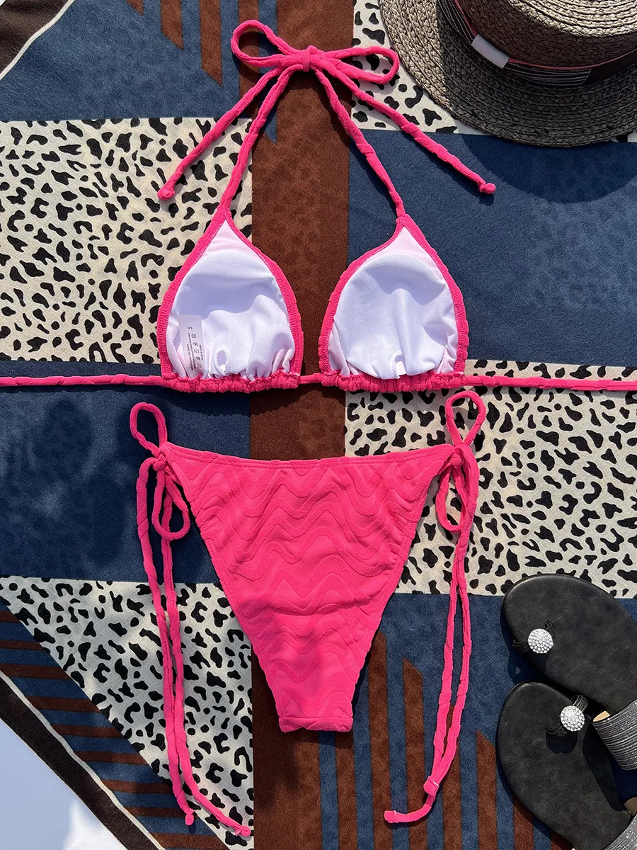 Wave Wrinkled Halter Brazilian Bikini Female Swimsuit Women Swimwear Two-pieces Bikini set Bather Bathing Suit Swim Lady