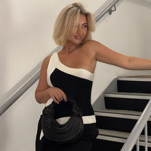 White And Black Patchwork Slash Collar Asymmetrical Tank Tops Women Hipster Side Hollow Out Lace-Up Tops Club