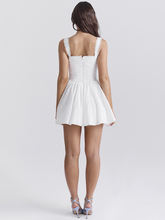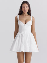 White English Embroidered Belted Mini Dress For Women V Neck Sleeveless Backless A-line Club Party Dress