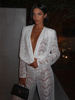 White Lace Two Piece Sets Women Deep V Neck Long Sleeve Tops And Long Pants Ladies See Through Loose Trousers Sets