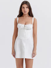 White Lace-up Party Mini Dress For Women Robe Summer Spaghetti Strap Backless A-line Club Short Dress Vestidos
