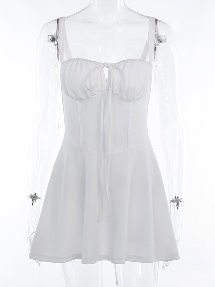 White Lace-up Party Mini Dress For Women Robe Summer Spaghetti Strap Backless A-line Club Short Dress Vestidos